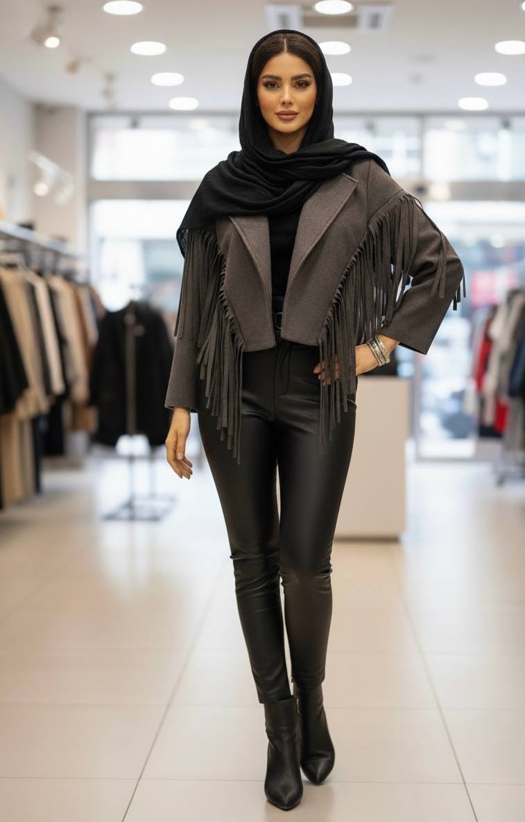 کت زنانه جیر چرم طرح چریکی – پک ۴ عددی