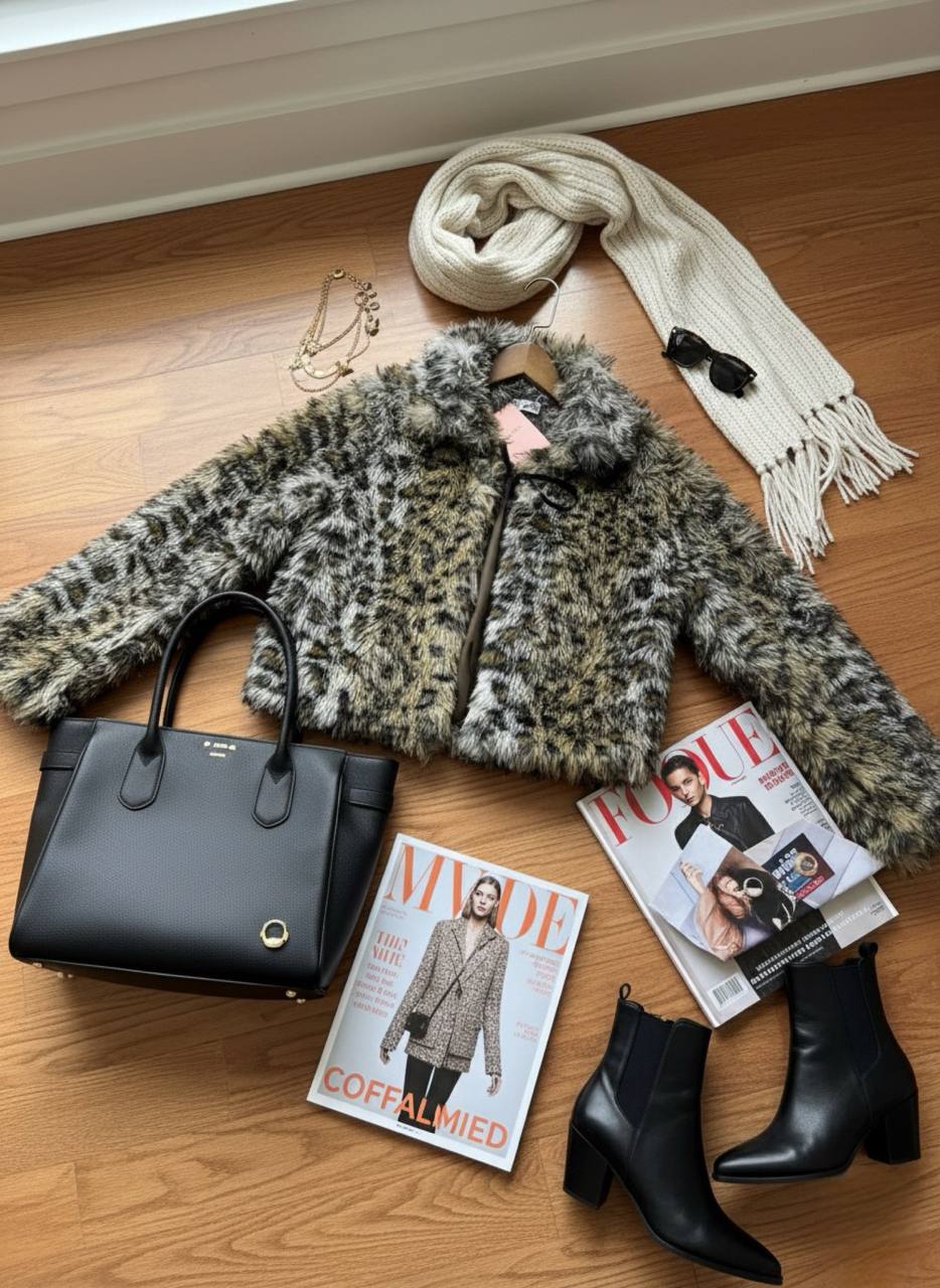 کت زنانه خزدار طرح پوست پلنگ – پک ۲ عددی